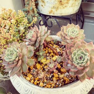 数ヶ月ぶりの投稿😊 まだギリギリ紅葉残ってる💓 最近は葉挿しオンリーで寄せ植できるようになってきました🍀︎ ̖́-