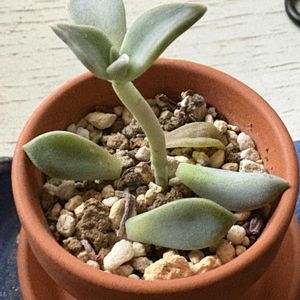 今日は15時ごろまで風強めな晴れ予報☀️夕方からは曇りの見込み☁️ 4月20日にホムセンから救出してきた徒長エケベリアに変化👀 カットした挿し穂からは下葉をもいだ箇所から発根確認。 葉が立ってて良い感じ😁 親株としては徒長していて軟弱な株だったはずなのにも関わらず、同時に胴切りと植え替えという荒業も耐えてしっかりと子吹き始め、これまた生命力の強さに脱帽🫡 2枚目 一応やってみるかという気持ちで挿した葉からも2つの葉挿しっ子が🙌