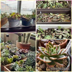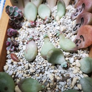 #葉挿し苗の植え替え おっきくしたいから、おひとり様のお部屋にお引越し。 育ちやすいものばかりだけど、自家育成した子たちだから、特別可愛い❤️