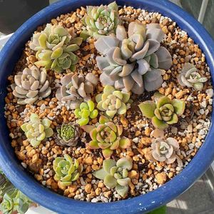 今日の多肉チャン 葉挿しから大きく成長しました🥰👍 地植えしていたので霜対策で1鉢にまとめて冬を乗り越えて貰います👊😆🎵❤️