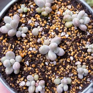 ほんのり紫ピンクの ピオリス💕 葉挿しっ子達も可愛く生長中〜🌱 まだお母さんの姿とは似ていませんが 親子ですよ〜😊 💖ピオリス=別名フィオナ💖
