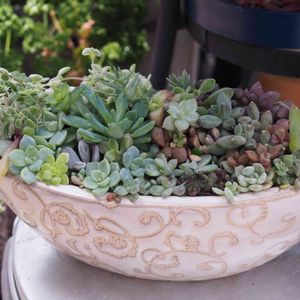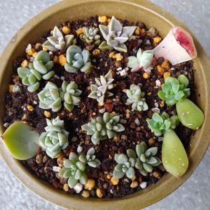 可愛い鉢が格安で手に入ったので✨ 先週ですが育った葉挿しっ子達のみで寄せてみようと❗️(ネックレスとセダムは違います) 葉挿しも徒長してる子が多く…大きい子以外は根っこありません💦 やっぱり難しくて…こんもりさせるにはネルソルを使わないとですかねぇ⁈(苦手です…) まぁ、こんな大きな鉢に育てた子達で寄せられた記念に📸隙間にセダムを挿し込むのが楽しかったです♪(´・∀・`)ゞ