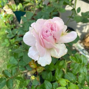 今年お迎えした、ラマリエちゃんです! ベビーピンクのバラが欲しくてね🌹 大苗の割には細くて値引きしていたのを購入しました♪
