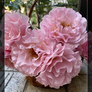 ☔をさけてガーデンルームに詰め込まれたバラさん達 下には新聞紙が敷いてあり、外からは、かなりイマイチな見た目に… 花びらヒラヒラのラマリエは雨に打たれたら、すぐに散ってしまうだろうな🙄