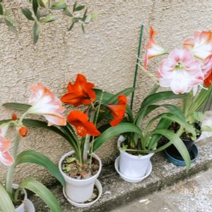 おはようございます😃 爽やかな朝です。 懐かしいアマリリス🤳⤴️です。 赤も白も叔母から譲り受けて、長い間放置も同然😰咲かないのは当然😅 昨年たっぷり光合成後に自己流ながらお世話開始👍今年春にはお見事❣️綺麗な花が 咲きました。5鉢全部咲きました。 実は白のホンアマリリスは今年初咲き、、 白が有ることすら知らなかった😅😅😆 咲いてビックリ‼️嬉しかった〜❣️ 来年も咲きますよう、お世話します💪💪👍🤗