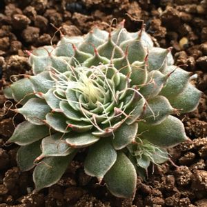 台風19号で被災された方にお見舞い申し上げます。 GSにも関東勢の方がたくさんいらっしゃるので心配です。 グラプトペタルム属 菊日和🌱 「この子、お迎えしました!」みたいな投稿を普段はあまりしないんですけど、今、みどりのまとめを編纂中なので、珍しくPOST(笑) ポイント消化のためにフリマアプリでお迎えしていた子🤭 葉先のヒゲがちょっと乾燥気味(抜き苗で来ますから)なんですけど、欲しいと思っていたような姿形の子がお迎え出来ました🎶 小型種なんでめっちゃ小さくて3cm足らず💦こんなに小さいのに子どもも3~4コ付いてて嬉しい💕鱗のような手触りがちょっと面白いけど、ホコリが取れにくそう😂 この子はグラプトペタルム属の原種で、シルバースターや大好きなマーガレットレッピンの交配親♀。春まで生き残っていたら「スリーショット」撮りたいなぁ😍 ICNによると、 ロゼットは扁平で高密度、直径5〜6 cmまでしか大きくならず、ひとつのロゼットに75〜100枚の葉をもつ。花弁は鋭利で白色、先端は明るい暗褐色〜赤色で、途中斑点のグラデーション。 あ、じゃあ葉っぱはこれからまだまだ密集しますね🤭群生するタイプなので楽しみです🎵 「多肉ラボ©」参加のお申し込みは、1/17のブロンズ姫の投稿からお願いします🤗🌱