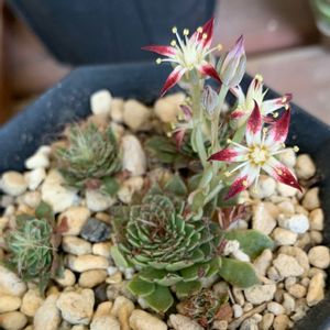 おはようございます✨ 春先にやっと見つけて入手した🎶 グラプトペタルム・菊日和 来た時より縮んだ?💦💦 のに体の割りに大きめな花芽が伸びて😓 その後カット✂ うっかり花芽を捨ててしまった😱 花瓶で楽しみたかったのに😢