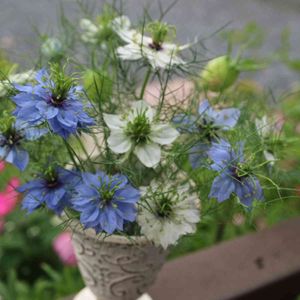 青八重だけだったニゲラ、 そこから数年間かけて先祖返り?したのかなんなのか、青一重、白八重、白一重と出揃いました✨