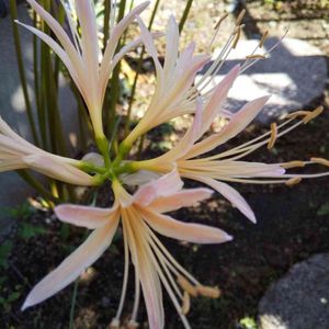 今朝の庭 お彼岸に間に合いました! 彼岸花、一番花咲きました。 赤コーナーはまだ蕾ですがまだ20本これから咲きます🎶