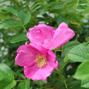ハマナスの二番花が咲いてます。 肥料もやらないのに、ぐんぐん伸びて他の薔薇さんに元気を分けてあげたいくらいです😅