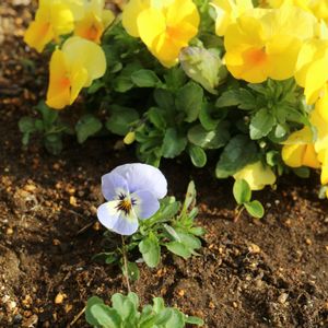 こぼれ種から咲いたビオラちゃん💞 昨年、花が終わってもずーっと放置してたので😅、今年はこぼれ種から何本も生えてきました🌱