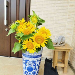 先日のひまわり畑、『ご自由に』、とハサミ✂️まで用意してくださっていたので、いただいてきました🌻 花粉がすごいので、室内にはいれられませんが💦 迫力~🌻🌻🌻