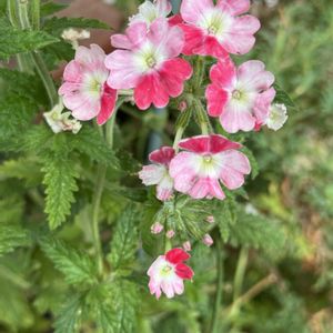 バーベナ 2年目を迎えました❣️ 白🤍꙳☄︎とピンク色💗のお花 濃い緑色の葉っぱ⋆⸜💚⸝⋆ お花をひきたててます🤗 とても素敵なお花です🌟⋆꙳