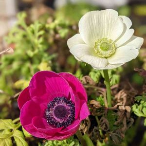 ✾アネモネ咲いてきました✾ お水をサボってたら危うくパリパリの葉になってましたΣ(´∀`;) 鉢が浅めの場合は早くあげないと危険ですね💦