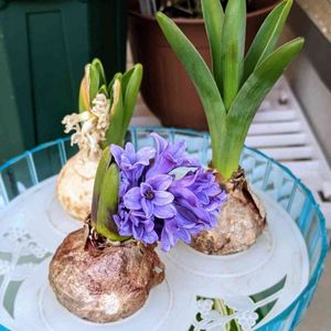水耕栽培のヒヤシンス 1つ目はピンク(右) 2つ目は白(左奥) そして3つ目は紫 私の勘で選んだ球根 無事に違う色が咲きました♪ しかし、ピンク以外はドワーフ 白なんて花が全部出てこれず咲き切る前に枯れました😱 こんな水耕栽培… ドワーフはめっちゃ可愛いけど、庭に植えたやつはとっても立派に育ってきてます😅 はっきり言って失敗です! 来季は全部庭に植えよう!🤣