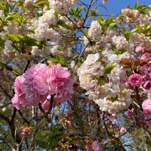 ソメイヨシノが葉桜になったけど、今度は八重桜です🌸 ピンクと白の八重桜が交わっててとても素敵でした☺️