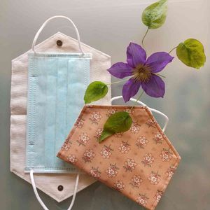 布の上にマスクを置いて二つに折り、マグネットホックで留めるマスクケースを作りました😷 これで外食の時などに、外したマスクの置場所に悩まずにすみそうです😊 今朝開いたクレマチスさん🌿🌿✂️ 春よりもかなり小ぶりです💙