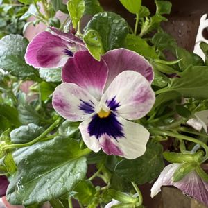 こんにちは😊 1♡♡よく咲くスミレ ラズベリーかな? 切り戻してお花が咲いてきてます🌼.* 2♡♡ビオラ 小輪系で色変が楽しい子です❇️