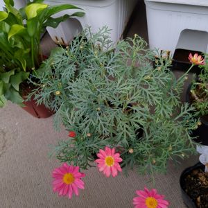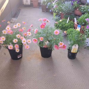 pwの花日記マーガレット編 左⬅ストロベリーホイップ 真ん中シンプリーコーラル 右➡ソレミオ(挿し芽)
