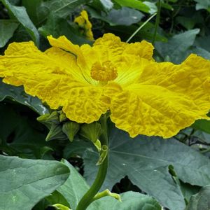 9/19 正岡子規の忌日 糸瓜忌 今日のお花 ヘチマ ガード下のフェンスにツルを伸ばし黄色い花が溢れている 以前散歩で見かけ、今朝,元気な旬の花を撮りたくて🏍️を走らせ 撮れたてが投稿出来ました ❶雄花 ❷雌花(花の下にキュウリのような細い実が付く) ❸若い実 ❹大きく育ちました ❺緑の葉に黄色い花が映えて綺麗💚💛💚💛💚 たまたま此方を育てられた道路向かいの奥様とお会いし、暫くヘチマ談義 お料理や,私も以前作ったヘチマ水等(二人とも結局使わなかった😆)等々 我が家もグリーンカーテンとして植えたが、昨年同様今年も雄花のみ、実ができず😢 葉も痛み惨めな姿,軒下で水が足りなかったのかな?