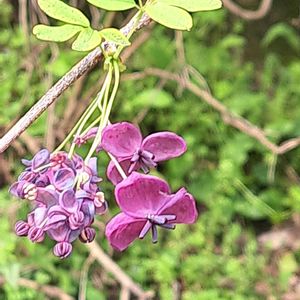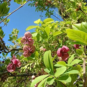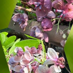 今日のお花 アケビ 4月末に何ヶ所かでアケビのお花を見ることができました。 場所によって、濃いピンク、薄いピンクと色が違いました。 今度は果実を見たいです。