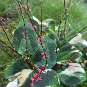 おはようございます👋😃☀️ 💠今日のお花💠ミズヒキ💠 💚🤍~斑入りミズヒキ~🤍💚 直径2.3mm位の花💠 雌花には1本の雌しべ 先端2裂 雄花には5本の雄しべ 花弁無し 花弁に見える萼片は… 十字型の萼片 上3つが赤❤ 下1つが白🤍 斑入り葉の中にも緑色💚が強く、 下駄模様の葉っぱも有り!! 先祖がえりする事もあるので、花が咲いたら直ぐに切ると良いそうです。 葉にはうっすら毛が生えてます😊♪