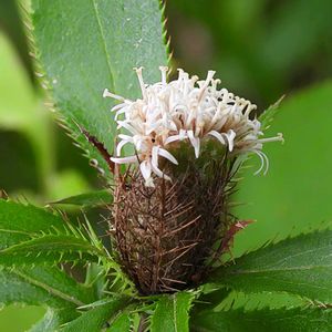 9/30に投稿したオケラの花は両性花でしたが、半月位後に雌花が咲き始めました。 筒状花だけのオケラの雌花は雌蕊だけで柱頭の先は2裂しています。 オケラの花は雌雄異株です。 4️⃣ 雄蕊の葯筒と雌蕊がある両性花 キク科オケラ属