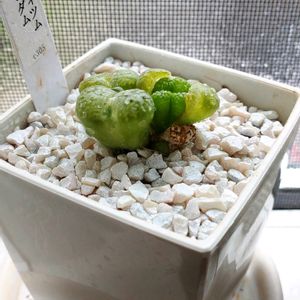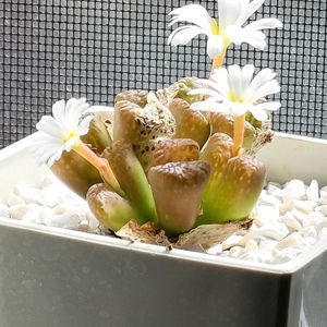 コノフィツム属 ✨️✨️ ほぼ1.8倍位に増えたコノフィツム達👏数えるのめんど😅 ①毎年一番乗りに開花❁⃘*.゚ ②お気に入り、今年も無事でありがとう💓 4年前5個→今40個✌️ ③ツヤツヤちゃん、オフタルモ 付いてた種を撒いて見ようかな〜! 春から放置してた種だけど、大丈夫かな😅 🏷かずのコノフィツム