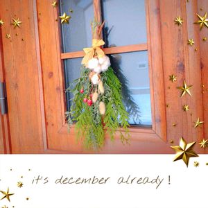 今朝友人がが生スワッグを作って届けてくれました~🎄オシャレ!いい香り!