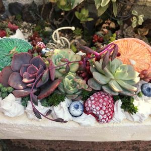 Merry Xmas🎅 出来立ての多肉のXmasケーキ🎂 美味しそうでしょ⁉️ 素敵なケーキの器は茶々ちゃんから届きました(^^)💕 ありがとう❤️ セダムガーデンに置いたら凄〜く大きく見えるわ⤴️⤴️💕 遊びにいらした方は端からガブリと召し上がってねぇ(^^)♬💕❤️⤴️ 素敵なXmas🎅を〜(^^)♬💕❤️