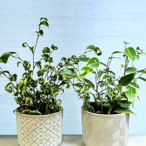 ベンジャミン・シタシオンです❣️ スターライトとバロックを合わせた様な 品種です🪴 最近は園芸店でも売っていなくネットでも お高いので流通量が少ないのかなと思ってます。 購入して1年近くになったのでお気に入りの鉢に植え替えをしました☺️