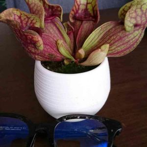 サラセニア(植虫植物)全体はこんな感じです。 とにかく水が大好き🍀 真夏の直射日光は❎です。 地植えをするとどんどん大きく数も増えるみたいですよ💚 #サラセニア #植虫植物