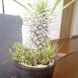 初の塊根植物。 既に脇からモサモサ。 赤ちゃんも出て来てる♪ お店の人も 置いてみるのは 初の試みということで まだ勉強中とのこと。 で?なのかな? ワンコインでした👌👌 長く上へ 伸びるそうですが 水を与えすぎると しっかりとした 茎に育たない そうです。 乾かし気味に 陽当たりの良い場所に🌱 #塊根植物初心者🔰 #コーデックス #パキポディウム #ラメリー #分岐株 #マダガスカル