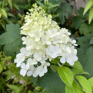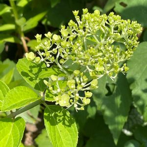 待ちに待った開花です。 ノリウツギ ポーラーベア 白く色付いてきました。グリーンからの変化が美しいです。 親株から差し木した3鉢がしっかり成長しています。枝の伸びが少々奔放なのもご愛嬌。
