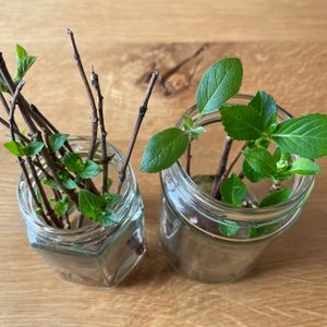 剪定した小枝から芽が出ました。 白い花が美しいノリウツギポーラーベアです。