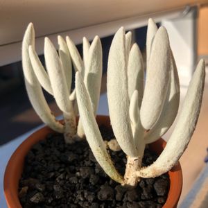 🏷16日は色の日。 大銀月 モンスト🌙✨ Senecio talonoides f. monst. 寒い夜が似合う銀月( ◜ω◝ ) 少し前の大きめ地震でひっくり返ってしまって、夜な夜な植替えしました😢 その後無事逞しく成長しとります💪🏻( ¨̮ 💪🏻)✨ 🏷おうち宇宙🚀🌏 🏷ぼくモルモンスターズ👾🐲