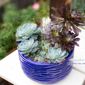 少し暖かい日があり、黒ちゃんが元気です。 黒ちゃんは寒いの苦手で、寒いとしわしわになっちゃう。 なので暖かい日だけ外に出すという過保護ぶり。 以前とは違う鉢に植わってます。 以前の鉢は【masakoの多肉No.15】のタグで確認できます。 この鉢になるまでに、何度かひっくり返し、キレイな姿になってきたかなと思った頃に、また、ひっくり返し… (*T^T) 最後はみごとに割ってしまいました。 この青い鉢に植えてからも、ぼろぼろすぎて、なかなか写真を撮る気になれませんでした。 でも、ようやく美しくなってきてくれました。 ( ;∀;) 【masakoの多肉No.15】