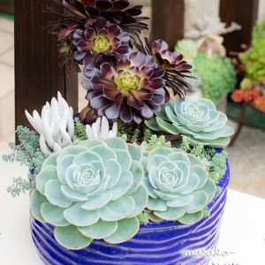 また、前とその前のpicと同じ子です。 この写真もあげたくなりました。 横から📸 大型銀月がいます。 ブルーの鉢によく映えます。 (*^▽^*) 今日は午後、風が強くて、リトルビューティの鉢が倒れてたよ~ (;∀; ) びゅんびゅんでてきた花芽が折れてたよ~。 ついでに剪定しますか… 剪定、大事ですよね。 【masakoの多肉No.15】
