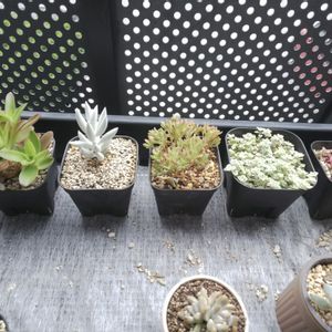 白系多肉3種。 白が映えますなあ。 太陽光☀️が反射されてます!
