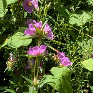 1⃣2️⃣3️⃣4️⃣ ツルリンドウ[蔓竜胆] リンドウ科ツルリンドウ属 北海道~九州に分布 桃紫色~白色で先が5裂した花をつけ、裂片の間に副片がある 実はまだつけていませんでした 5️⃣シコクママコナ[四国飯子菜] 米粒のような白い膨らみが濃い赤色に変わっていました 下から咲くので一番下が色が濃くなっています