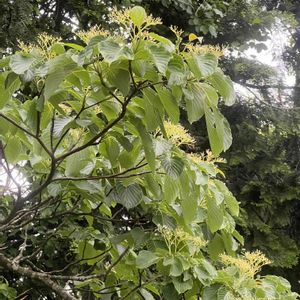 里山散歩道に お花をびっしりつけた 「カナメモチ」バラ科カナメモチ属 紅色の若葉や光沢のある葉も美しい🥰 庭木によく使われるけれど この木は剪定されず自由に成長しているようで 直径10cmほどの笠形の花序がのびのびと広がっています 4枚目 カナメモチの幹! オイオイ大丈夫かい!! と声をかけたくなる細さ でも これがこの木の特徴のようです