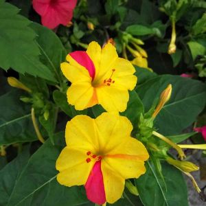 オシロイバナ 黄色に紅の筋 いい感じだな。