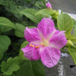 オシロイバナ pm4:00には、開いてる。 pm3:00には、閉じてた。 夕方近くに咲くみたい。 線路脇、この色だけが咲いている。
