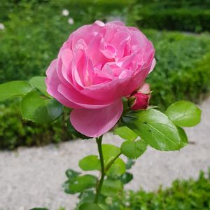 これもフクシアだそうで、白い範入りの葉っぱは、初めてみました! また、こういう風に暫定している低木もまたいいですよね😊💕 リンダーホーフ城の庭園にて