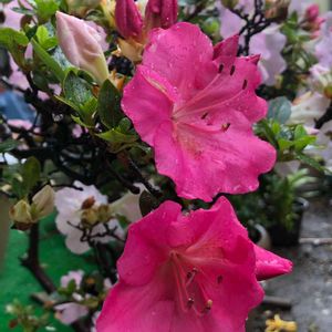 ディープキスウォーター 小苗ですがはながさきました🙂 本来なら花の外側の花びらが 赤くて中がピンクの筈なんやけど💦 小苗だからかな? 来年に期待しよう(^^)v