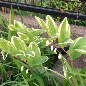 庭に生えてたこの植物🐙 葉っぱが白覆輪でスズランみたいな花が咲いてます🦏 これって何ですか❓
