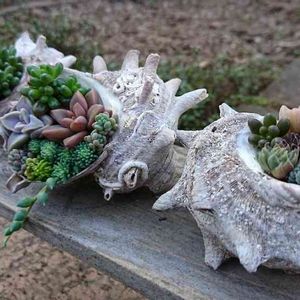 サザエの殻に植えてみました😁。 アスファルト(自宅前の道路の隅っこ)でガリガリと擦ったり、玉子の殻を割るような感覚で少し叩きつけて穴を開けました。
