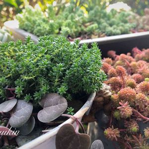 遊びに来ていた娘が家で育った子供達を寄せ集め セダムを詰めて楽しんでたのはいつだったかな 昨日友達にあげる寄せ植え探していたら 何これ🎶 あまりの可愛さに💘 セダムっていろんな表情見せるね センペルもいい味出してる👌