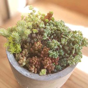 いちかわファームさんのセダムをコンクリート鉢にお引っ越し🎵 種類がたくさんで名前がわからないけどギッシリ寄せてみました😀