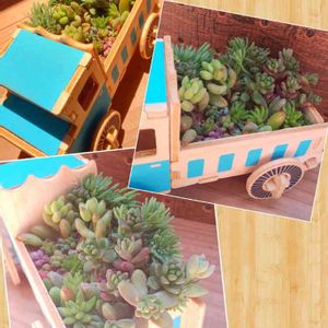 おもちゃのトラックにセダム寄せ🎵 色味がぜんぜん無い😑💦